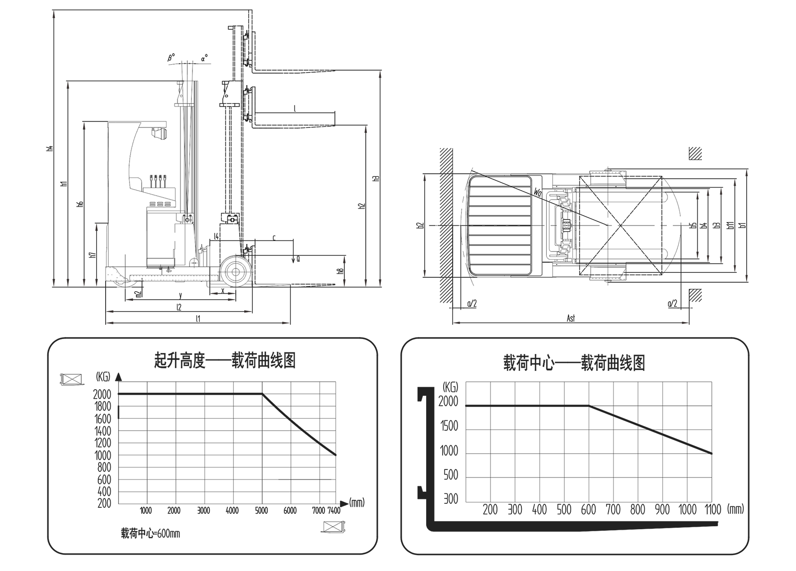 门架的起升油缸和链条外置于门架两侧,提高货物起升时侧向的稳定性,加宽操作者的视野;