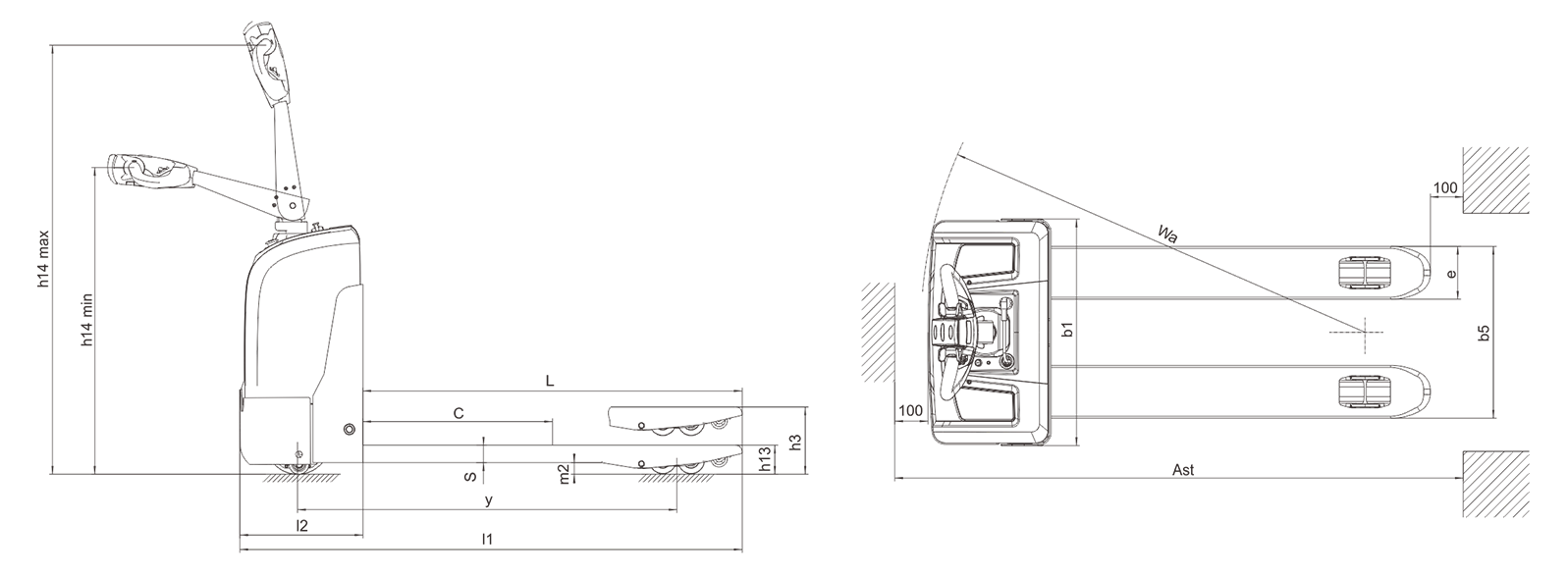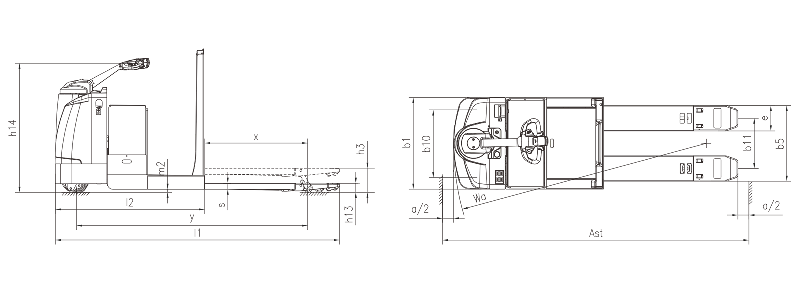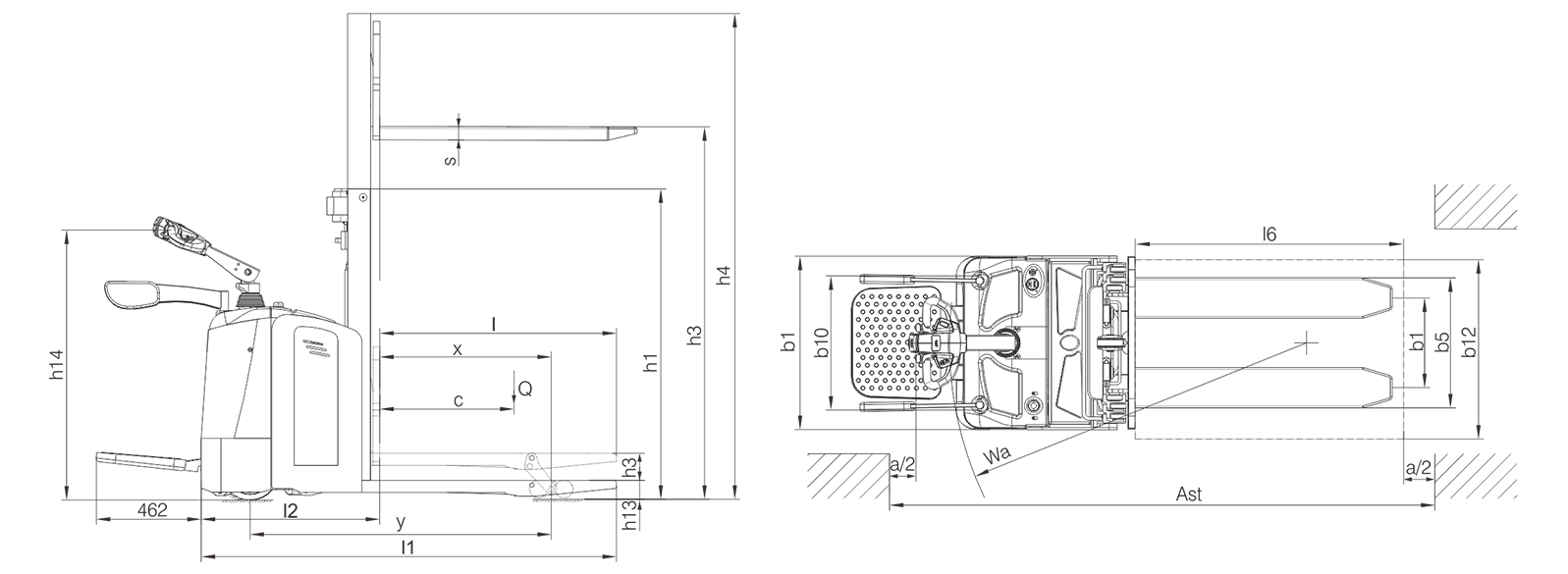 宽车体、宽货叉的设计,整车运行平稳,过载能力强,爬坡性能好,车体、轮子等结实可靠,经久耐用;